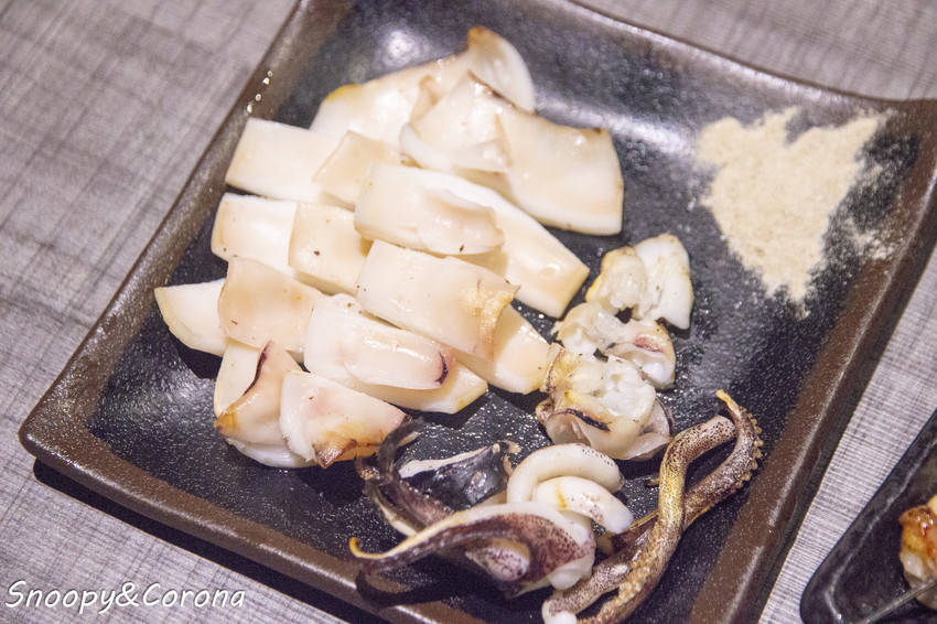 軟絲鮮Q帶勁,沾點有哇沙米的椒鹽嗆得好過癮。