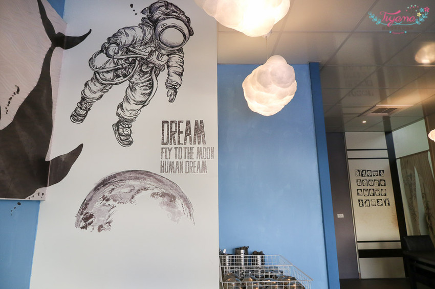 1樓是充滿天馬行空的素描插畫和棉花糖雲朵,另一面是潔白牆面搭配紅火鶴鳥掛畫,是小清新感的網美牆,但說到網美牆…2F還有更厲害的!!