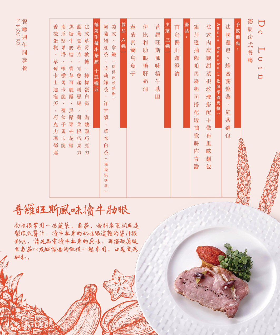 這天享用的德朗饗宴,主菜選擇伊比利肋眼鴨肝奶油$2800,另有以下兩種主餐的選項。