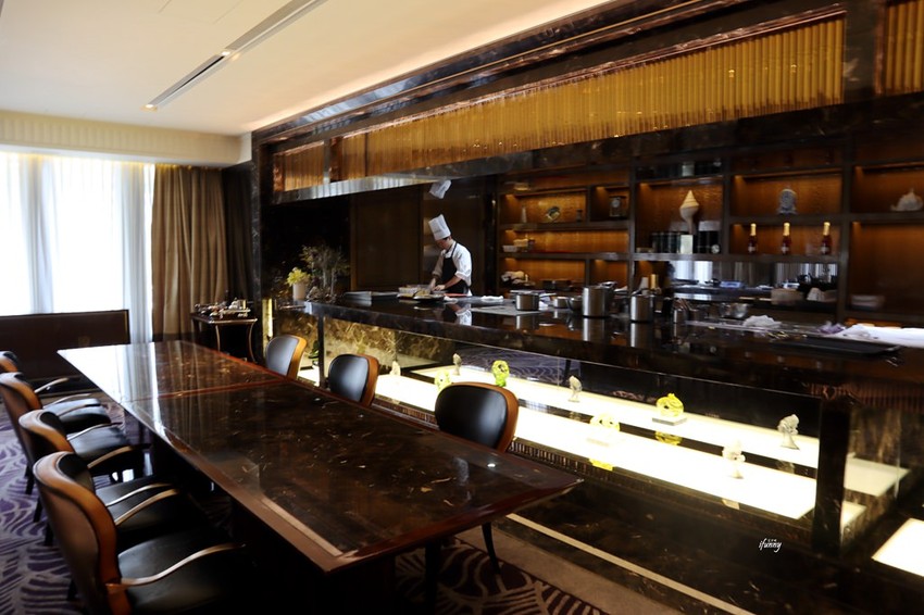 整體裝潢由香港香港著名的建築、室內及產品設計師-梁志天操刀設計,梁志天12度被素有「室內設計奧斯卡」之稱的Andrew Martin International Awards甄選為全球著名室內設計師之一,因此有著奧斯卡大師的美名。除了設計及氛圍的創造外,在建材方面的講究,更是令人折服!櫃檯到地板都是大理石,而且找來的石材,都拼湊成山水畫的意象,加上天花板上垂落的華麗燈具,令人感受到一股氣勢磅礡。