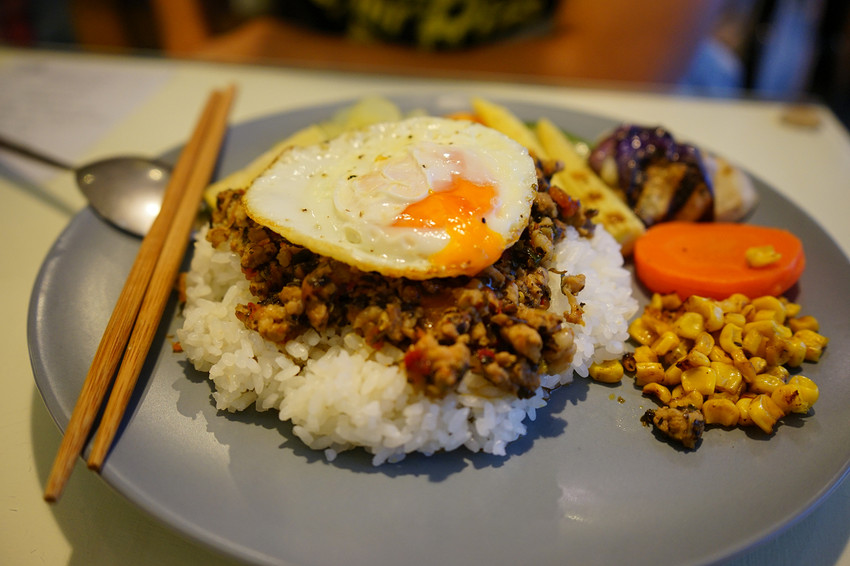 打拋豬味道不錯,非常下飯,尤其是旁邊搭配的烤蔬菜都很好吃!!!