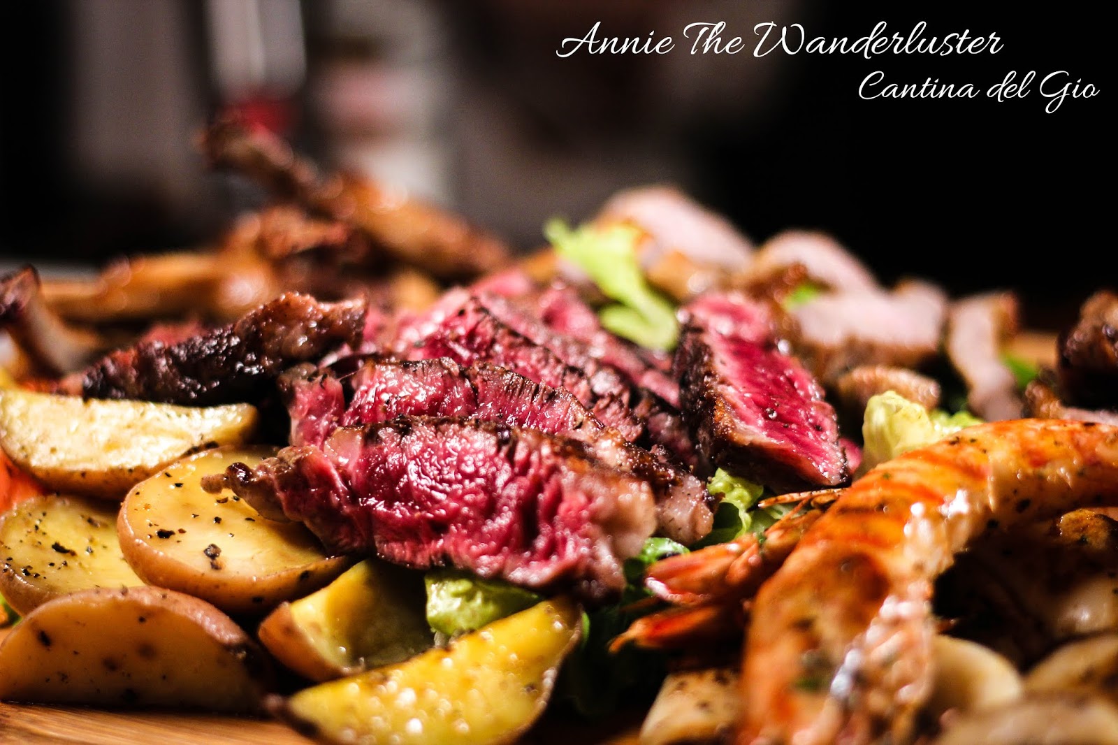 我喜歡這個拼盤很重要的一點就是沒有太多的調味,三分熟的肋眼牛排外酥內嫩烤得恰到好處,只要一點點鹽與胡椒就美味無比!