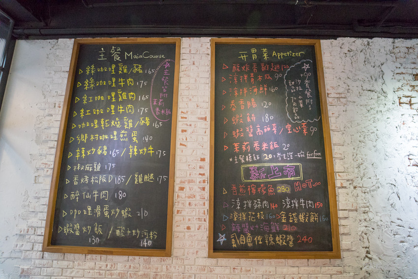 如果選擇障礙的朋友也可以參考黑板上的特色的餐點,單點主餐包含主菜及茉莉香米飯還有套餐可以選擇
