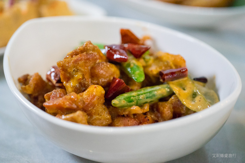 雞肉吃起來外酥內嫩沾附了紅咖哩醬汁,真的很好吃~