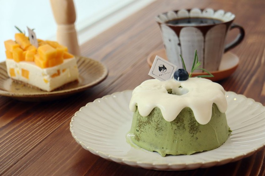 戚風蛋糕本是風雨珈琲的專長,採森半抹茶粉製成戚風體,戚風蛋糕有抹茶香且帶著濕潤,加上其上不過甜的香緹,整體很是清爽。