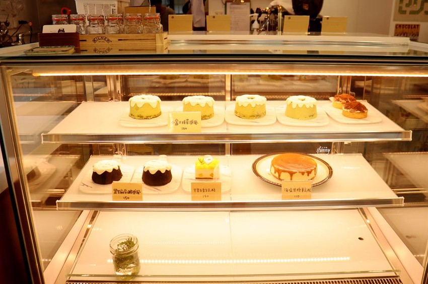 由於太早到,甜點櫃中的餐點還沒有完全擺出來,但招牌戚風蛋糕肯定是不能錯過的!