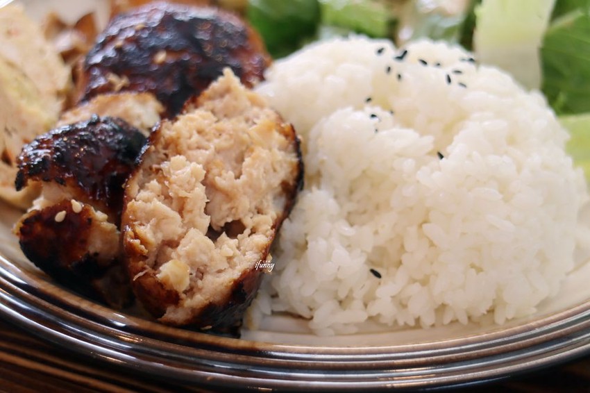 雖然這天的雞肉丸子外表煎得有點黑,但咬下去還有肉汁四溢,味道調得很棒,雞肉丸的彈牙口感,立即成為當天的第一好評!