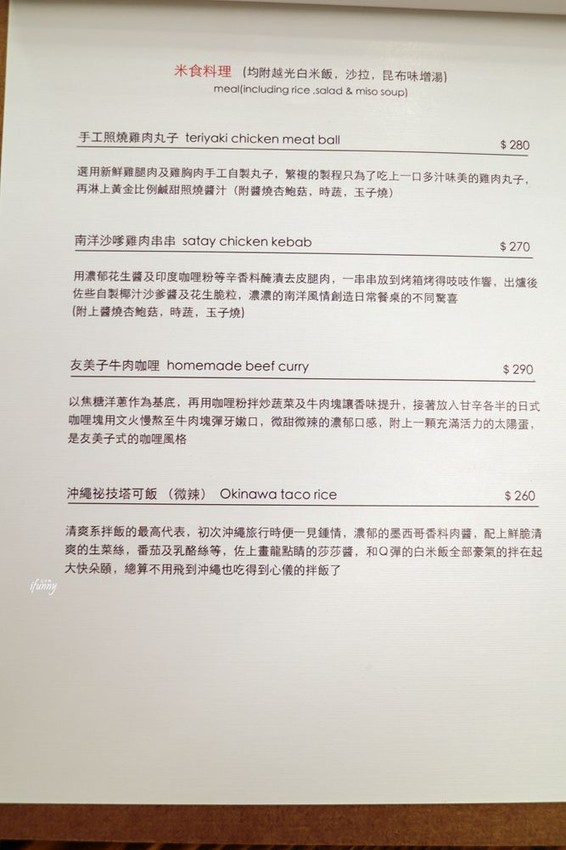 目前提供四種米食料理,但每一樣看起來都好好吃喔!又開始選擇障礙了啦!
