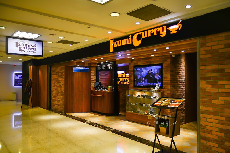 往下的樓梯就會看到GF 國賓影城售票口的指示牌,中間上面那個燈箱招牌的左半邊就是Izumi Curry,往前走就對囉!
