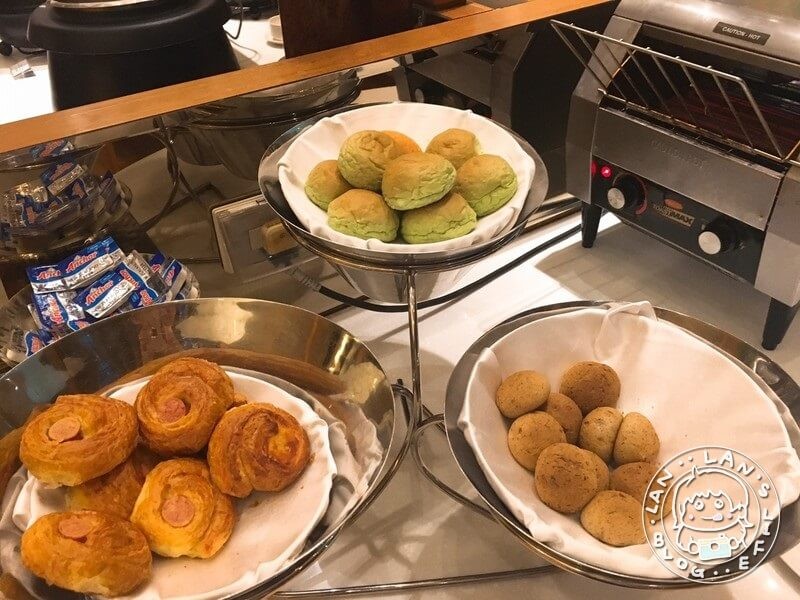 麵包有三款,可以拿奶油去抹,綠色那個是抹茶口味,