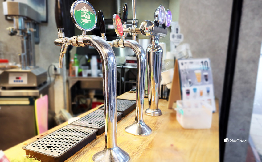這像似啤酒的拉霸裡裝的就是氮氣咖啡及氮氣茶飲,想不到隨手就可以喝到,不用特別跑到咖啡店裡呢。