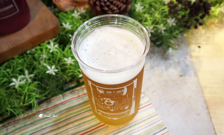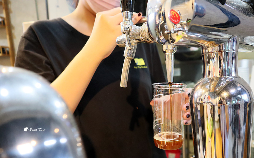 氮氣咖啡 - 壓出來後的氮氣咖啡上頭呈現細小的泡泡,看起來超像啤酒的,口感綿密清爽,天熱時喝起來特別爽快,不過氮氣咖啡是沒加糖的黑咖啡,所以喝起來帶點苦味,如不敢喝黑咖啡的朋友可以選擇冷萃咖啡喔。