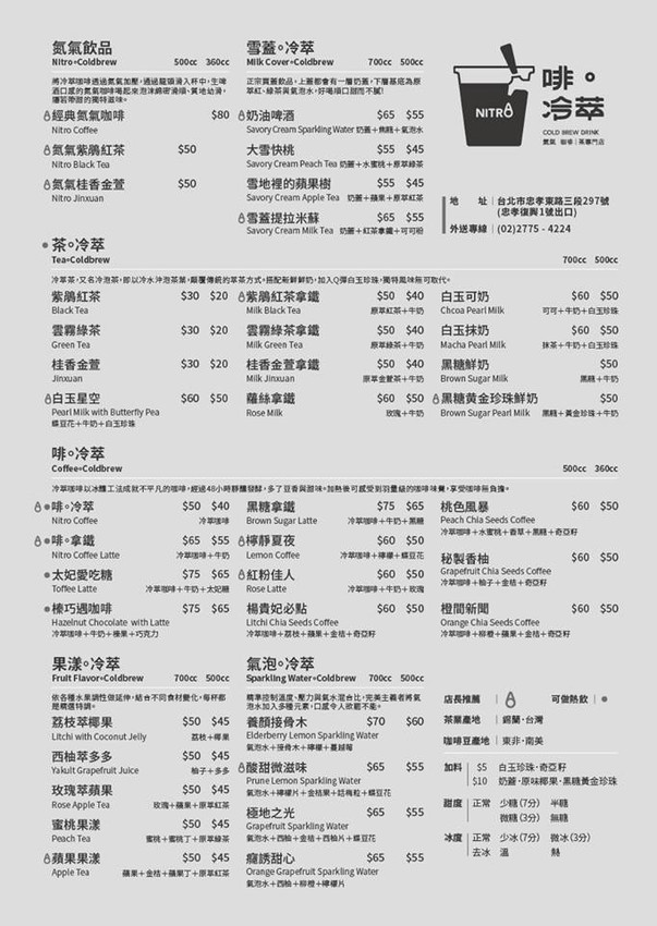 啡。冷萃 Nitro Tea&coffee 冷萃茶飲 冷萃咖啡 氮氣咖啡 手搖飲 易開罐飲品 捷運忠孝復興站 大安區美食 東區手搖飲