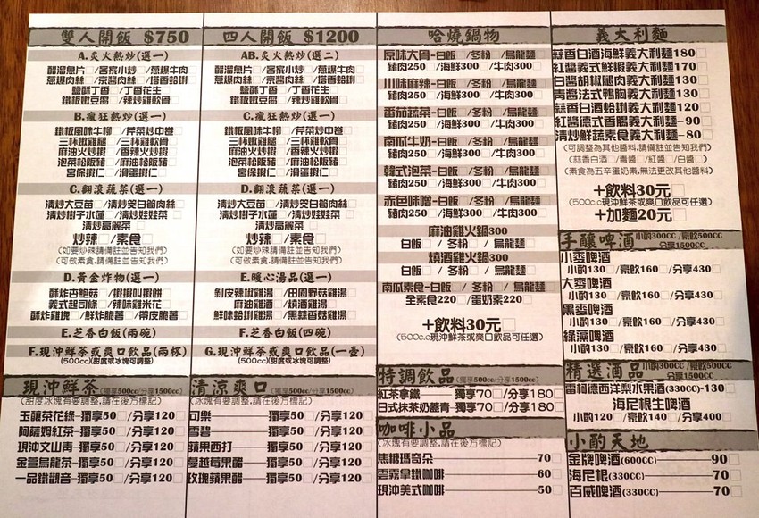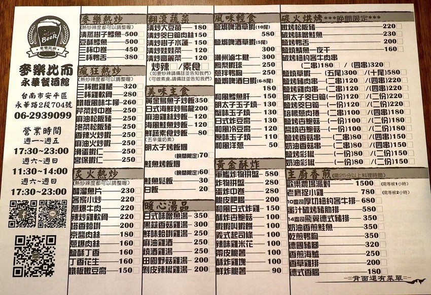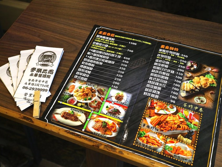《 麥樂比而-永華餐酒館 》的菜色非常豐富,中西式餐點都有,熱炒、燒烤、火鍋、炸物、義大利麵…通通有!