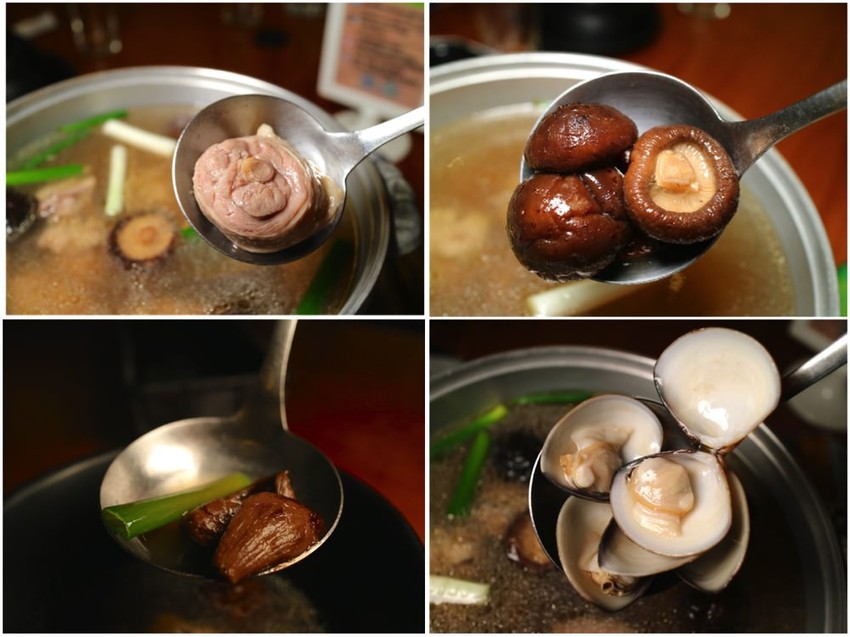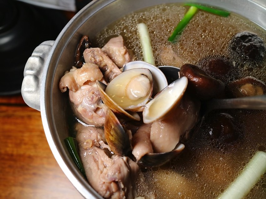 裡面滿滿好料,有超嫩雞肉、鮮甜飽水蛤蠣、厚彈香菇,湯頭鮮美,單喝這鍋其實就覺滿足(o^^o)