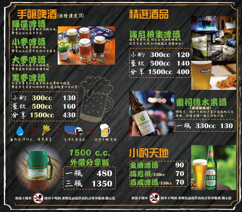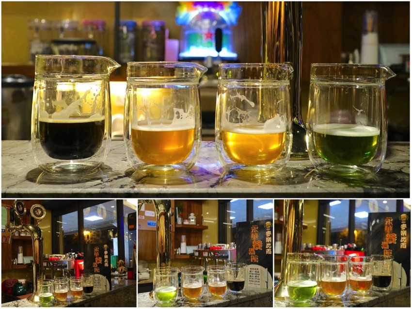 ▼《 麥樂比而-永華餐酒館 》提供各式啤酒,手釀啤酒則有四種選擇:綠藻/小麥/大麥/黑麥啤酒。