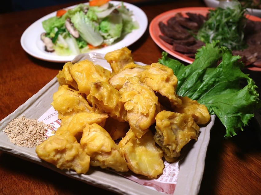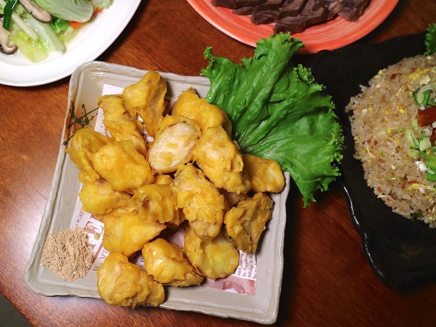 《酥炸杏鮑菇 》熱炸上桌,金黃色澤誘人