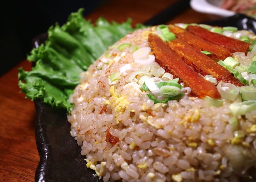 《黃金烏魚子炒飯》將烏魚子弄碎炒進炒飯中,讓你每一口都吃得到烏魚子的鹹香顆粒!