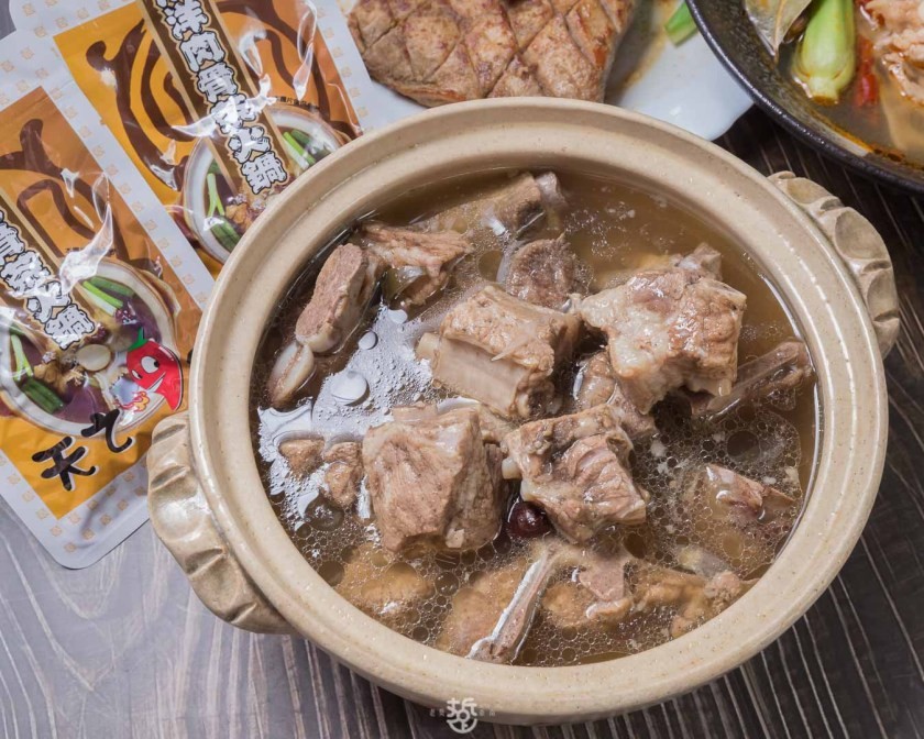 用南洋肉骨茶鍋湯底包加入1000cc水調勻。