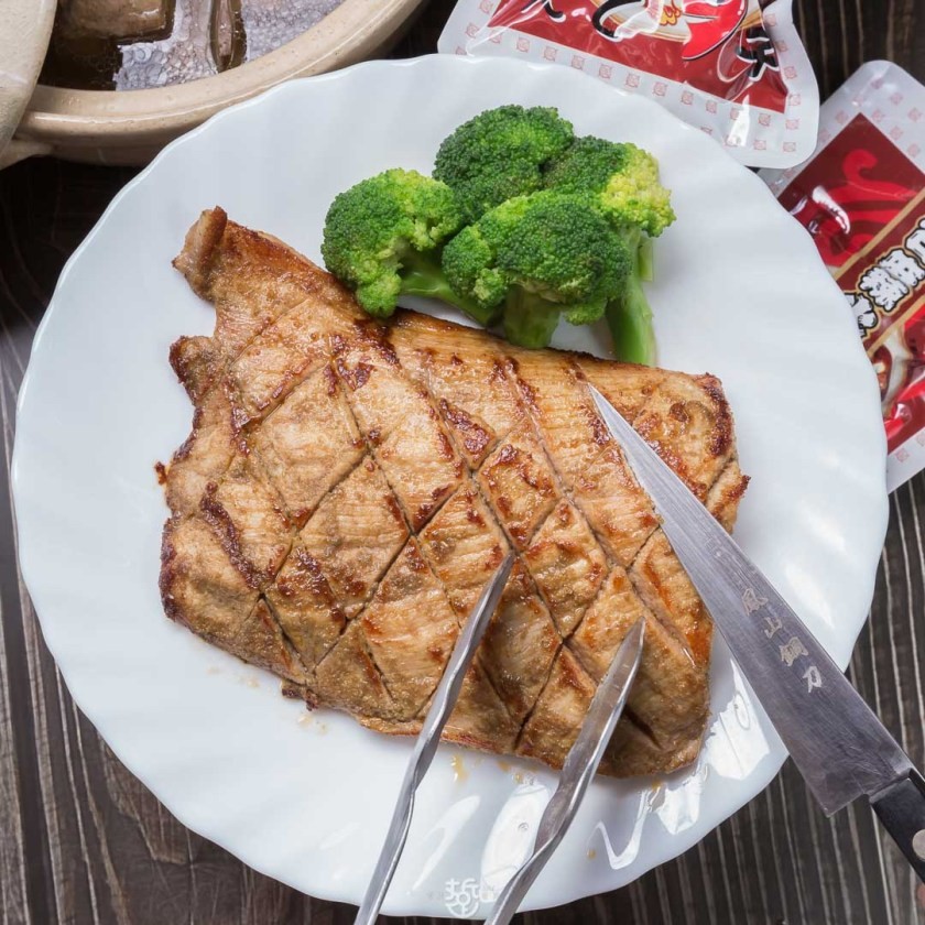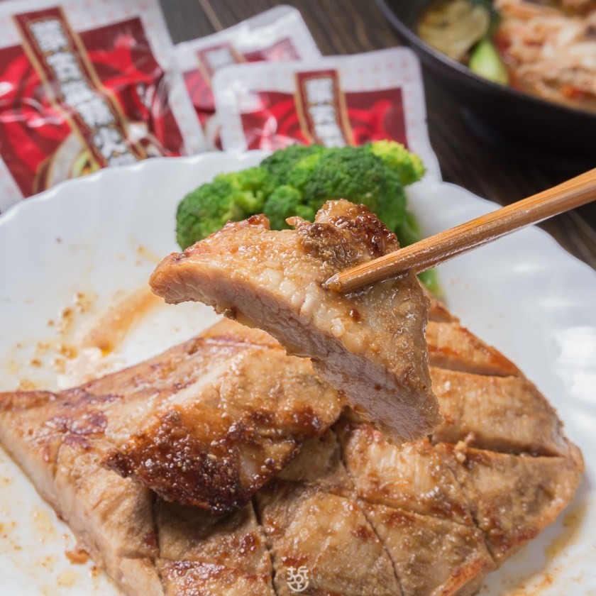 用蒙古麻辣火鍋湯底包加入100cc冷水調勻,抹在松坂豬肉上,靜置1H。