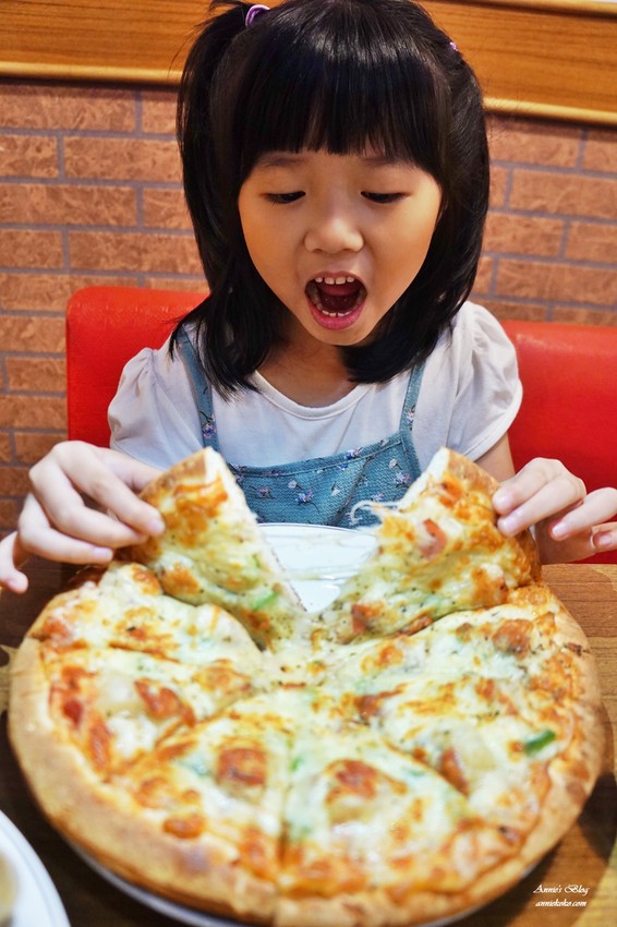 九吋PIZZA份量真的不小,老闆還貼心幫我們切成八塊,食用上很方便,夏威夷裡頭有滿滿鳳梨跟火腿,鳳梨甘甜又多汁,還有滿滿的雙層起士,超厚實的PIZZA一上桌大家幾乎要熱烈鼓掌了,PIZZA對小朋友就像是大人的甜點一般,吃得再飽都還可以吃得下PIZZA。