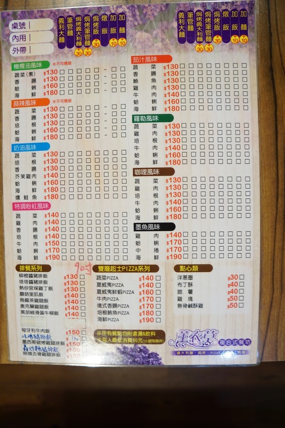 薰衣草 Pasta店內空間相當寬敞,店裡大約可容納36-40人左右,很適合學生包場聚餐,或是家人朋友一起來用餐,我們到店裡的時候還不到用餐時間,所以小小包場了,沒想到過一會店內幾乎快客滿,生意超好,別小看這樣的簡餐店,看起來簡單沒什麼裝潢,但料理還蠻對許多人的胃口。