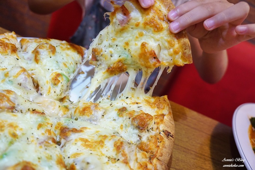 起司果然下得很足,PIZZA配料也非常大手筆,光看PIZZA厚度就知道,每一口都吃得到滿滿餡料的口感呢。