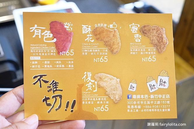 菜單看起來還挺有設計感的,不光只有有色雞排,這邊還能一口氣就吃到不同種類的雞排呢!如果你跟我一樣有選擇性障礙,來到這裡搞不好連選個雞排都要猶豫好一陣子!XD