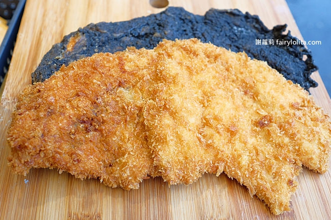 第一個老闆幫我準備了今天的限定款,看起來黑魯魯,沒錯,它就是墨魚口味!是說我在看雞排整個壓進黑色醬汁中裏色時有一種奇妙的感覺,心裡莫名覺得,這起鍋不曉得是什麼味道!XD