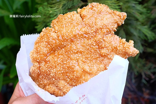 一開始看會覺得它好像紫地瓜,其實是用洛神花下去調色,這雞排吃起來竟然是帶著酸味?!就像喝洛神花般,有一種酸酸甜甜的感覺,不過氣味不會太重,算是淡雅的點綴,非常特別、非常酷,以口味來說,自己覺得還挺好吃的耶!:)