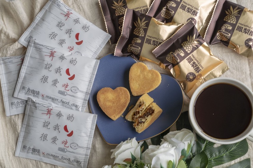人生的享受不僅於此,品咖啡當然也要食甜點,最應景的鳳梨酥一併附上,還是愛心形狀,代表滿滿心意❤️❤️❤️