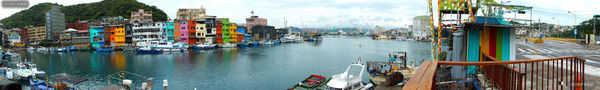 由基隆市政府結合年輕藝術團隊,一同進行「正濱漁港懷舊碼頭色彩塗布計畫」,將正濱漁港旁16棟建築物漆上色彩,