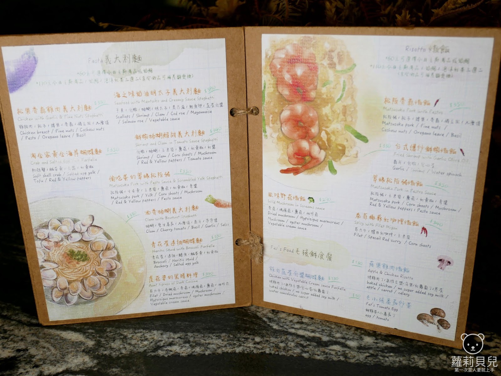 菜單整本採用手繪風格