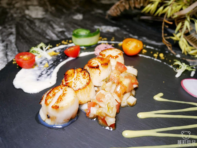這道前菜採用香煎干貝