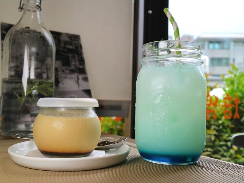 加價套餐的飲料和甜點:《微蘇打飲-藍色多瑙河》&《布丁》。