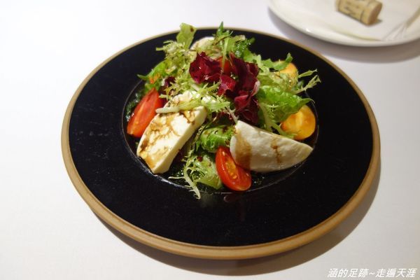 醬汁的部分是油醋醬,但還加了青醬,原來沙拉沾青醬也很搭,味道不錯。