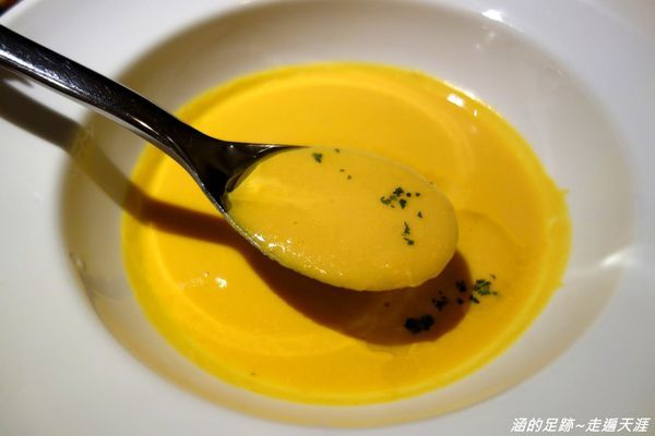 喝起來好濃郁喔!除了紅蘿蔔外,還有很自然的甜味,詢問了一下服務人員,原來是加入了洋蔥一起燉煮,所以才有蔬菜甜甜的味道,好喝喔!