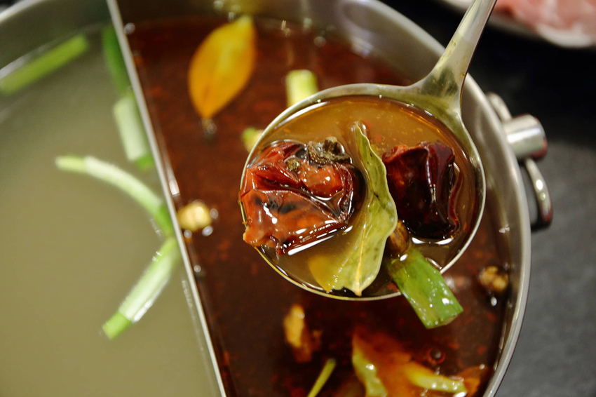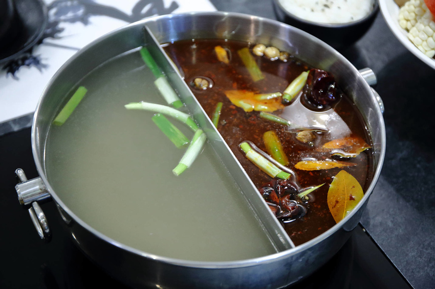 鍋底有六種,可以選兩種拼成鴛鴦鍋,我們的鴛鴦鍋選了日式昆布清湯鍋底、招牌麻辣鍋底