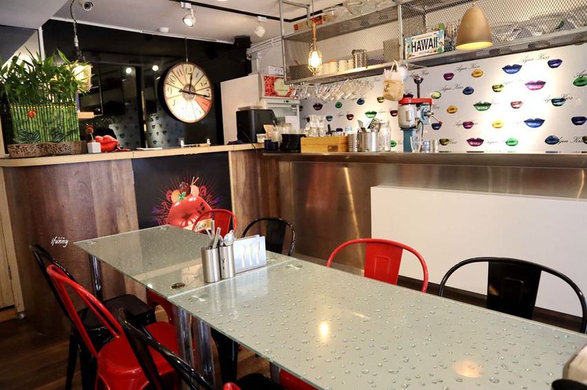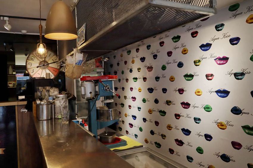 艾方妮很佩服Aqua Kiss水吻的老闆及闆娘,這幾年來見到他們經歷許多生活及健康的挑戰,卻依舊開朗樂觀地面對人生,並將三個漂亮女兒教養得很好,這真是不容易的事!而Aqua Kiss水吻的裝潢,他們也不假他人之手,全都是自己打造出來,色彩豐富且活潑的內裝,營造出吃東西的歡樂氛圍。