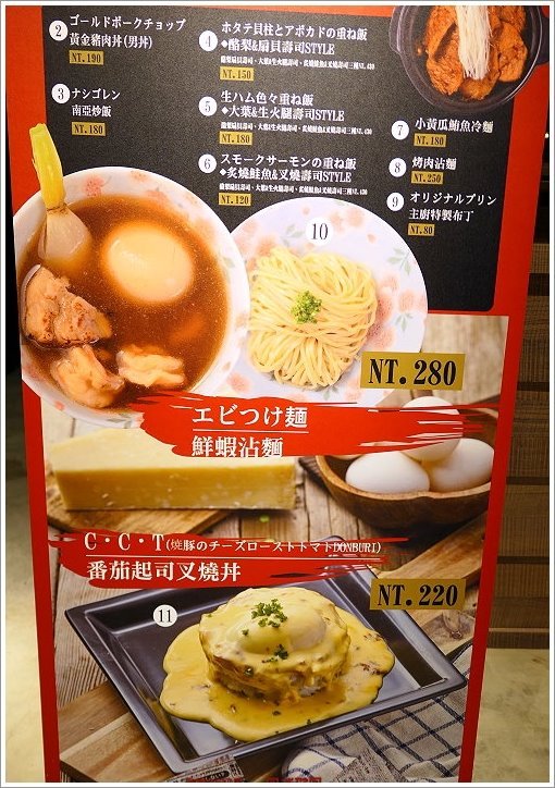 ▼其中像是鮮蝦沾麵、番茄起司叉燒丼看起來都超厲害的啊!可惜吃不到><只能下回再挑戰了!