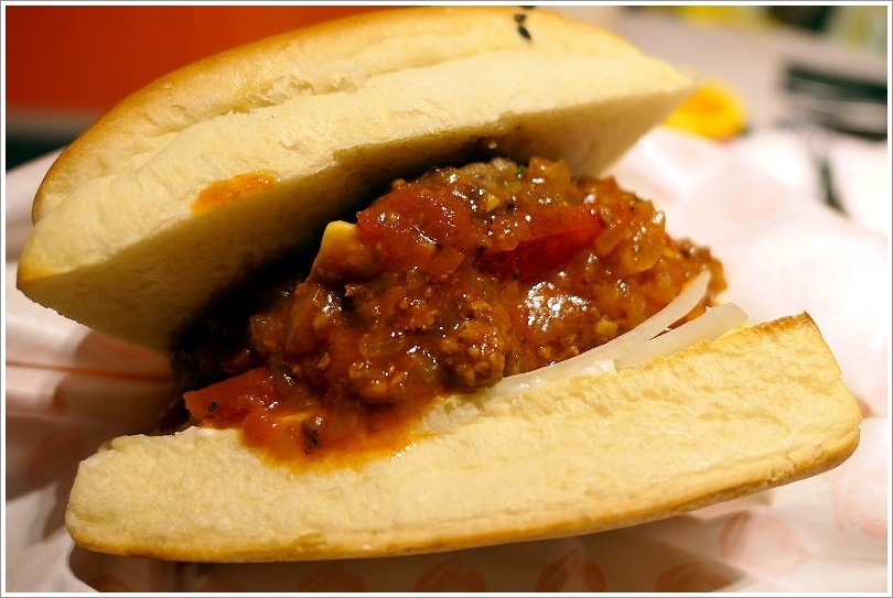 ▼大口建議可以用附上的油紙將漢堡包起來後,再直接將番茄肉醬淋到漢堡裡頭吃起來最爽快!
