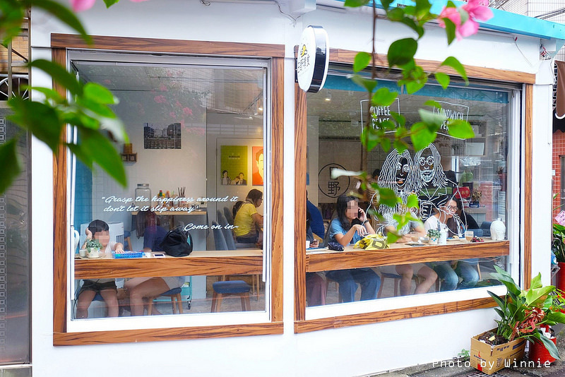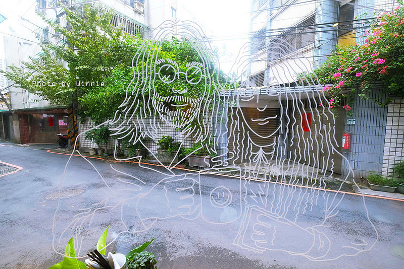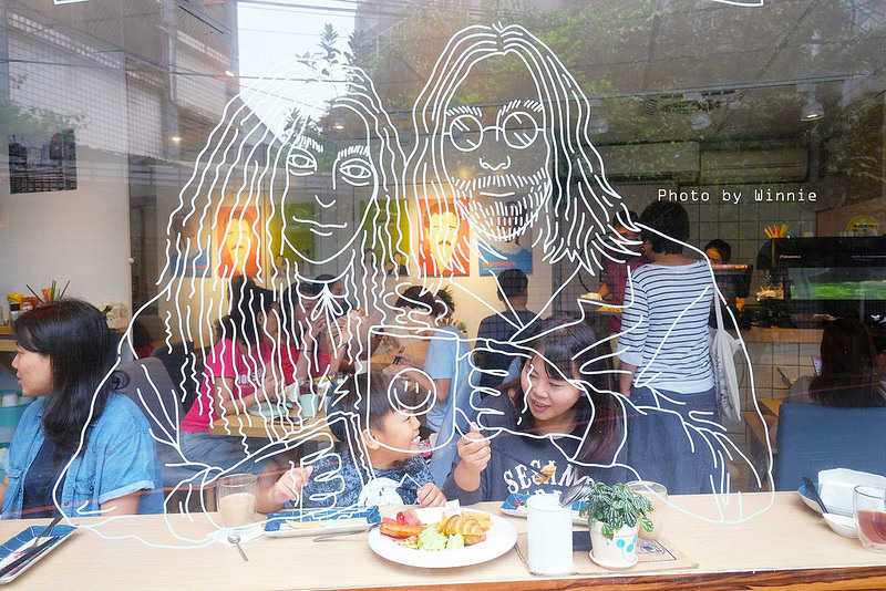 轉角的店面除了有明亮的落地窗台外,其實最引人注目的還是繪製在玻璃上的畫像
