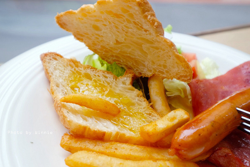 比較值得一提的是這份餐點裏的可頌口味跟一般常吃的不同,因為裏頭還特別的淋上了蜂蜜醬,所以不管是搭著火腿、培根一起享用,吃起來就甜鹹交錯,還蠻特別的