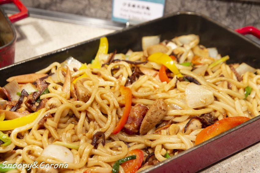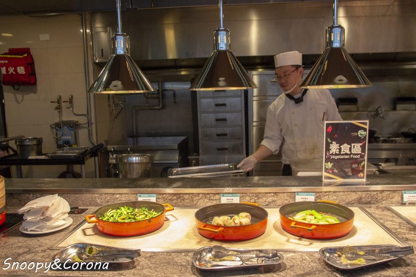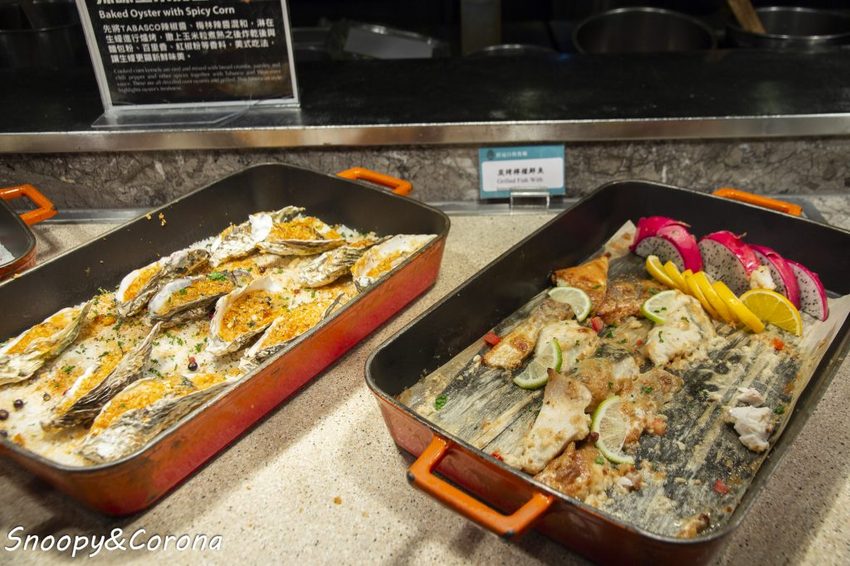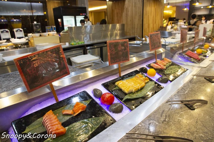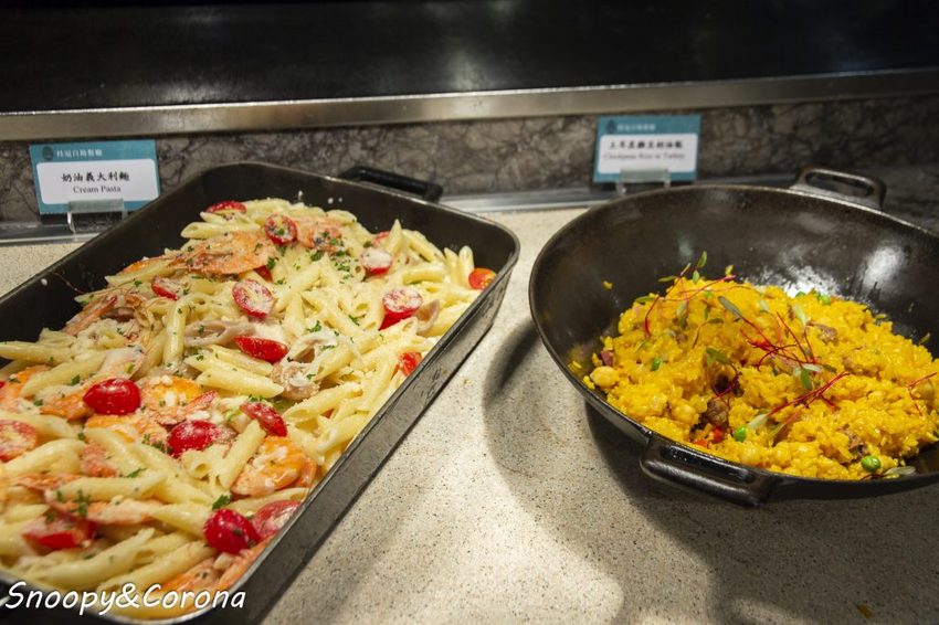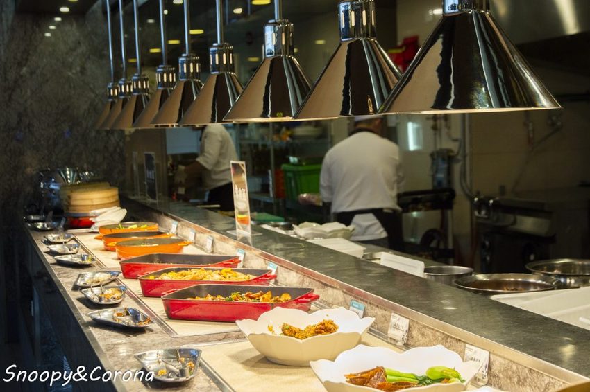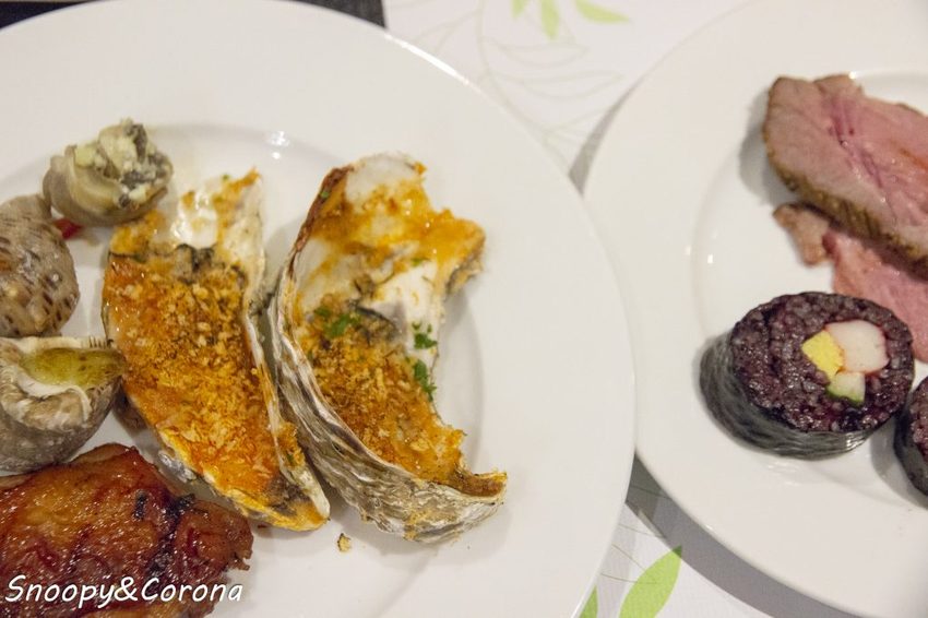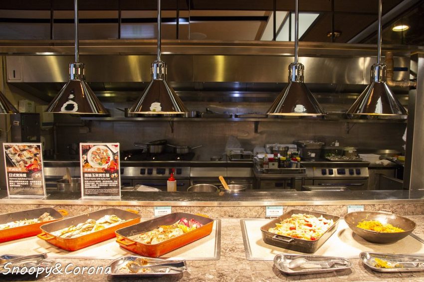 「桂冠自助餐廳」晚餐的菜色非常豐富,多到讓史努比有選擇障礙,