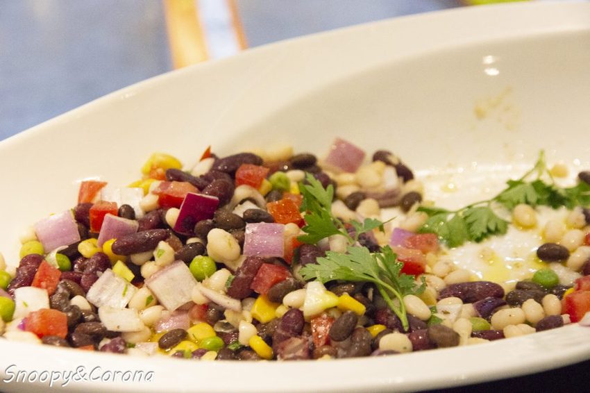 灑上玉米粒與其他香料,新美式料理我覺得很特別,史努比吃了好幾顆。