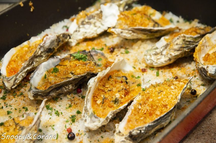 辣味玉米烤生蠔將TABASCO辣味醬、梅林辣醬混和淋在生蠔上進行烘烤,