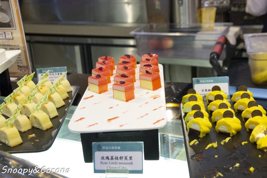 走到甜點區更是讓人口水直流,芒果椰奶慕斯、玫瑰荔枝舒芙里、