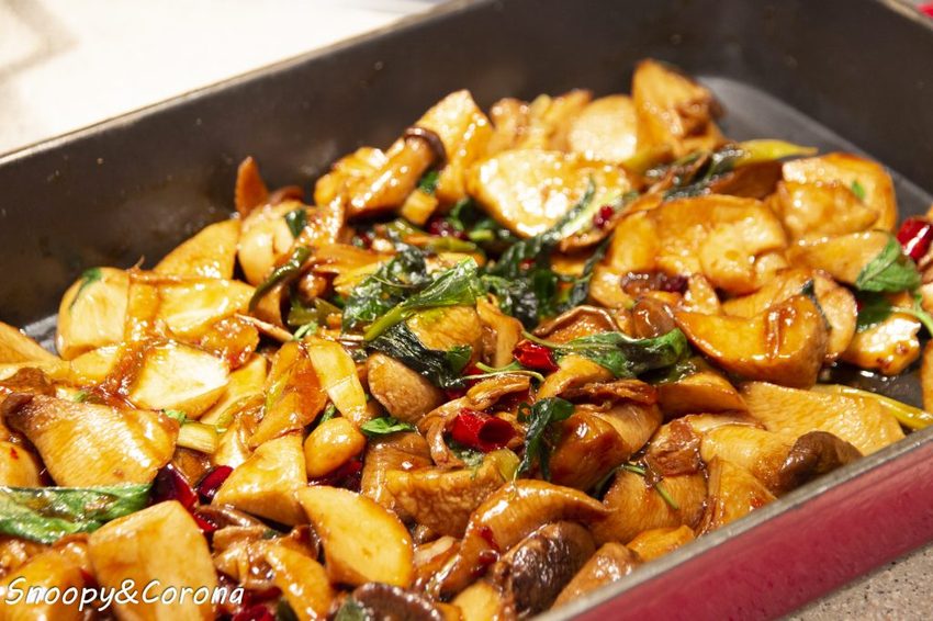 古早味桂冠米糕、大漠金沙雞、蒜香金沙骨、三杯杏鮑菇…