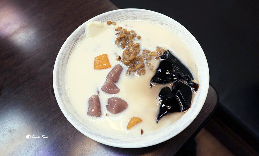 現磨手沖豆花(三種配料) - 選擇的是仙草、綠豆、芋圓地瓜圓,香濃的豆花加上豆漿,真的是必吃搭配,可以感受濃濃的豆香味呢。