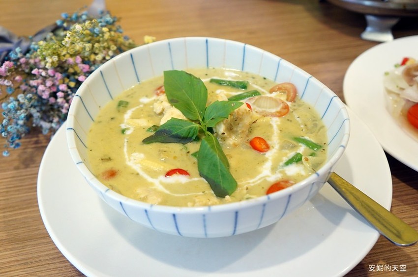 我不是咖哩控,但我特愛吃綠咖哩,綠咖哩裡有濃郁的椰奶與青辣椒加上10幾種香料結合,風味相當迷人,濃郁的咖哩不管是淋在白飯上面,或是搭配食材吃都是很棒的風味。